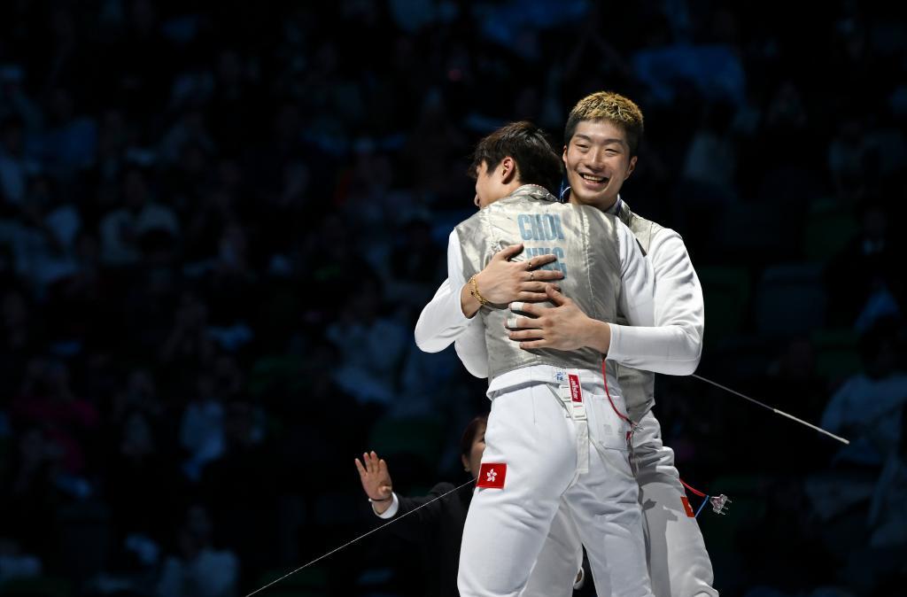 新华社香港11月19日电(仇万鹏、黄前天)19日在第十五届全运会男子花剑团体比赛中,奥运冠军张嘉朗领衔的香港队以45:34战胜福建队,夺得金牌。这也是香港队历史上首枚全国击剑金牌。 11月19日,香港队球员张嘉朗(右)与队友蔡俊彦赛后拥抱庆祝夺冠。新华社记者 胡呼呼 摄 香港队此前在全运会击剑项目上的最好成绩是2017年崔浩然在男子花剑比赛中获得个人银牌。“在主场夺得金牌的感觉真好!”张嘉朗赛后说道。 “夺冠的关键在于团队,大家互相配合、互相支持,这是一种信念,加油吧。”当天,由张嘉朗、蔡俊彦、梁千宇、吴诺康组成的香港队充满动力。他们首轮轮空,四分之一决赛击败浙江队,半决赛大比分淘汰上海队。决赛对阵卫冕冠军福建队,香港队进行人员调整,派出张嘉朗、蔡俊彦、梁千宇三人组迎战陈海威、陈伟权、徐杰组成的福建队。两队开场就交锋,打成9:9平。进入中场,梁千羽和张嘉玲进攻更加果断,帮助主队继续拉开分差,福建队其他球员毫无应对之策。随着蔡俊彦最后一剑的胜利,香港启德体育中心立即陷入一片狂欢。 11月19日,香港队球员张嘉朗(右)与福建队球员陈海伟比赛。新华社记者 吴路 张嘉玲 赛后摄该团队在决赛前整理了候选人和应对策略。 “我们仔细讨论了哪个阶段、派谁的战术,大家齐心协力,做到了完美配合。”他说。 “感谢队友们对我的信任,让我打进了决赛的最后一盘。没有我的队友,我不可能做到这一点。”蔡俊彦表示,希望球队以金牌为起点,在更大的舞台上为香港争光。在当天的女子佩剑团体比赛中,由傅莹、钱嘉瑞、杨恒宇、庄晨怡组成的江苏队以45:40击败广东队,夺得金牌。山东队获得铜牌。